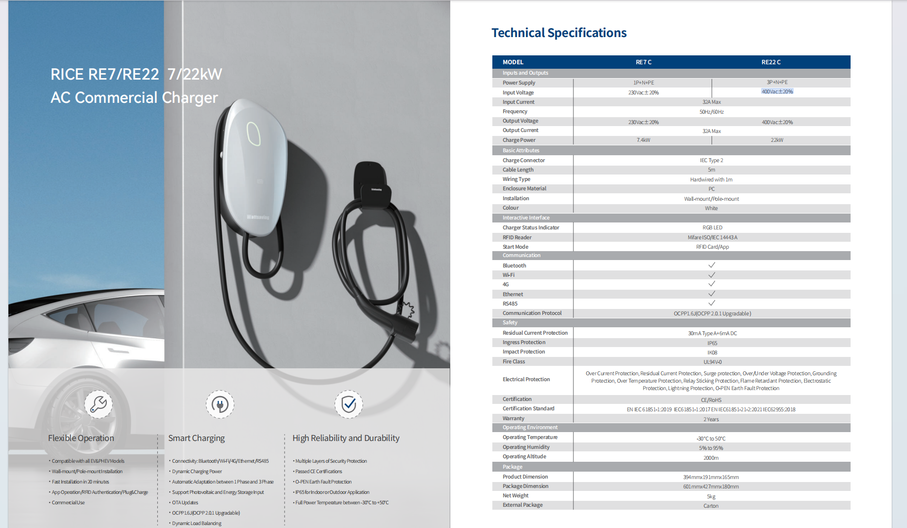 RICE RE7/RE22 7/22kW AC Commercial Charger