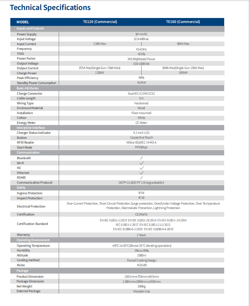 TE120/TE160 120/160kW DC Charger